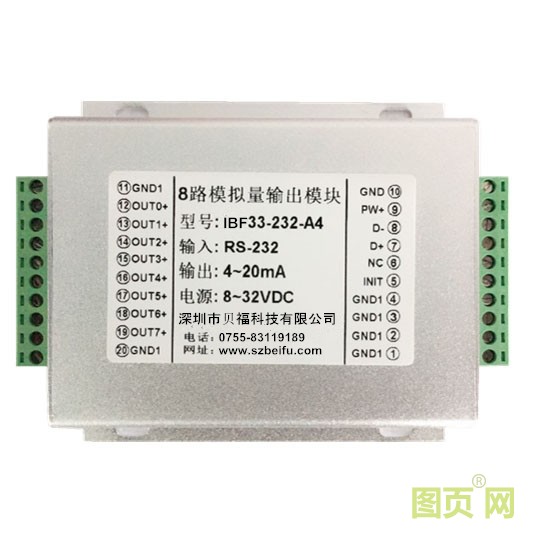 IBF33 信号隔离D/A转换模块,可以用来输出8路共地的电流或电压信号。